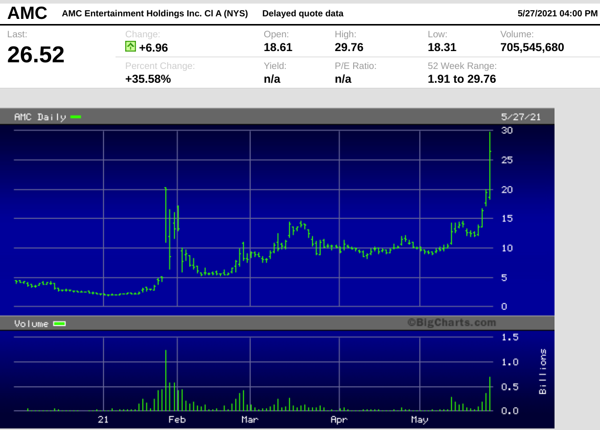 Amc ) stock is surging thursday as retail traders continue what happened: