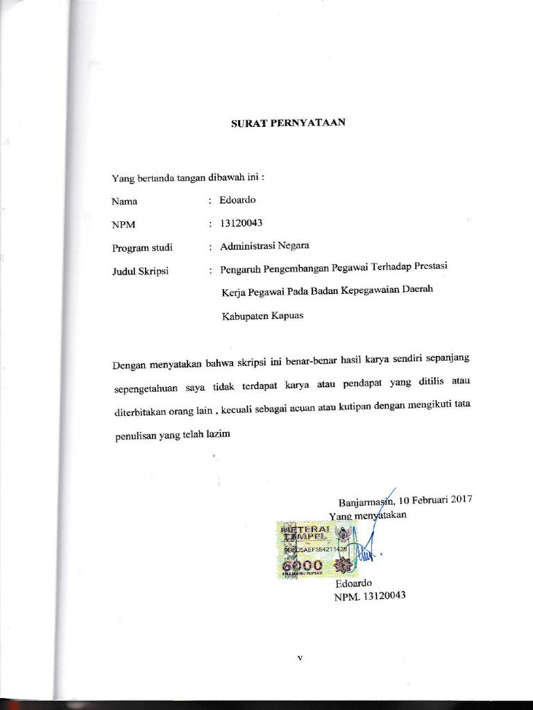 Judul skripsi yang baru : Isi dari surat pernyataan ini biasanya isi dari surat pernyataan ini biasanya berkaitan dengan keaslian tulisan yang dibuat dalam skripsi tersebut. Surat pernyataan pada dasarnya dibuat untuk memperkuat pernyataan lisan agar memiliki payung hukum. Surat pernyataan biasanya dibuat oleh orang yang ingin menerangkan sesuatu agar bisa dipercaya oleh penerima surat. Skripsi ini adalah asli dan belum pernah diajukan untuk mendapatkan gelar akademik sarjana, baik di universitas putera batam maupun di perguruan tinggi lain. Adapun surat pernyataan yang di ungkapkan berhubungan dengan masalah. Berisi contoh surat pernyataan lengkap dengan formatnya. Untuk mendapatkan file contoh surat pernyataan keaslian skripsi (ta) untuk mahasiswa yang tidak diproteksi dan bebas untuk diedit, silahkan anda kunjungi situs kami. Ada banyak jenis surat pernyataan sesuai tujuan surat tersebut dibuat. Contoh surat pernyataan salah transfer uang bank perusahaan dan pribadi january 24th 2018 contoh surat surat pernyataan transfer uang kini semakin dipermudah dengan banyaknya layanan yang ditawarkan mulai dari teller atm e. Contoh surat pernyataan skripsi di. Contoh karya tulis yang menyertakan lembar pernyataan keaslian, misalnya: Biasanya, surat ini dapat digunakan dalam berbagai kebutuhan sebagai pengingat akan.